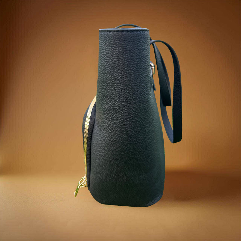 Sac Signature HAKSAM Paris en cuir Togo, vue de l'intérieur, élégant tote bag multifonction avec rangement ordinateur et compartiment isotherme